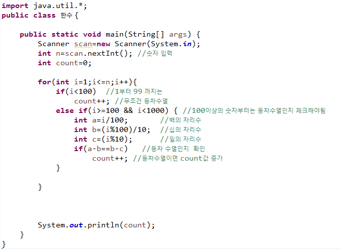 1이상 n이하의 숫자중에 각자리가 서로 등차수열이 형성되는 숫자의 개수를 구하는문제이다