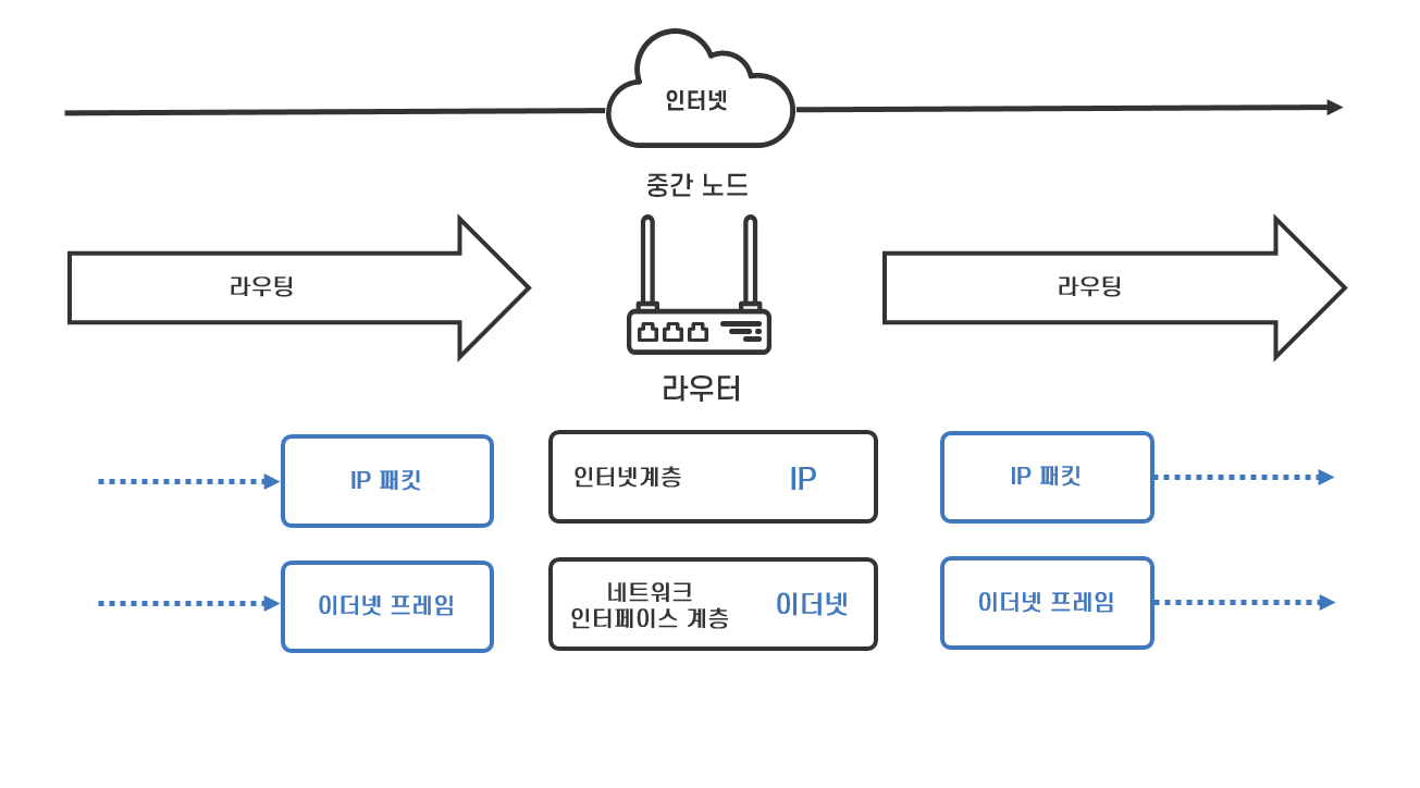 중간 노드인 라우터의 데이터 처리