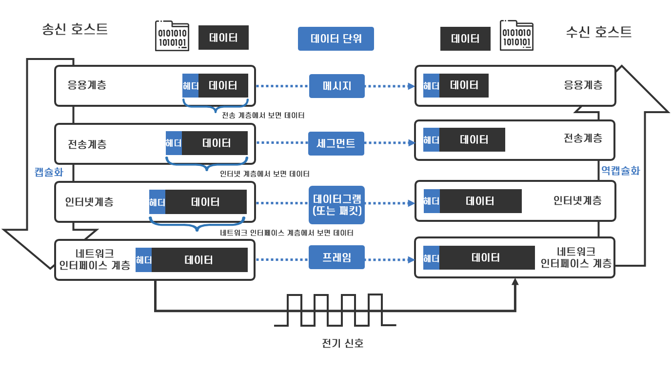 <그림 6> 데이터 단위와 패킷