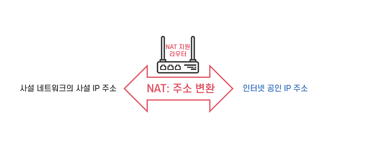 NAT 기술 덕분에 하나의 공인 IP 주소로 사설 네트워크에 있는 여러 대의 호스트들이 인터넷 상에 있는 호스트와 통신할 수 있게 되어 부족한 IP 주소의 문제를 해결할 수 있게 된 것입니다.