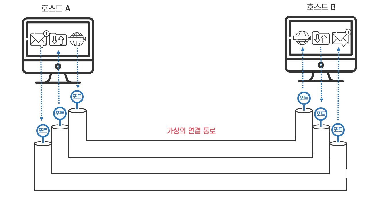 컴퓨터 내에 동작하는 다양한 애플리케이션들이 동시에 송수신하는 데이터를 구별하기 위해 전송계층에서는 애플리케이션마다 가상의 연결 통로를 만들어 데이터를 전송하기 때문입니다. 통신을 시작하기 전에 통신하고자 하는 애플리케이션끼리만 사용이 가능한 가상의 연결 통로를 확보하고, 이 전용 통로로만 데이터를 전송하여 정확하고 신뢰할 수 있는 데이터의 전송을 보장하는 것입니다.