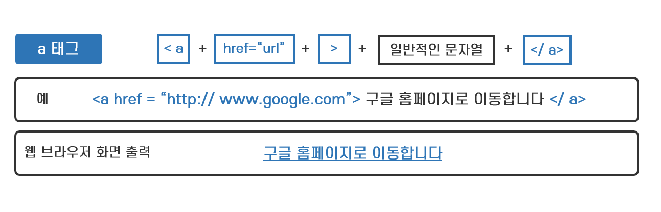 웹 페이지를 읽다 밑줄이 쳐진 파란색 단어나 문구를 클릭하면 새로운 웹 페이지가 열립니다. 이렇게 하나의 웹 페이지에서 다른 웹페이지로 연결되는 부분을 하이퍼링크(Hyperlink)라고 하며, 하이퍼링크를 구현하는 것이 HTML의 a 태그입니다.