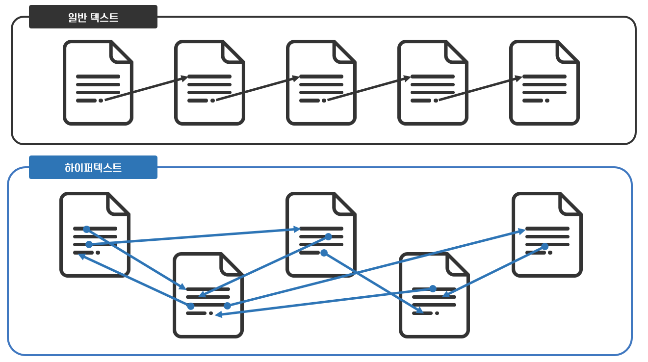 <그림 7> 일반 텍스트와 하이퍼텍스트