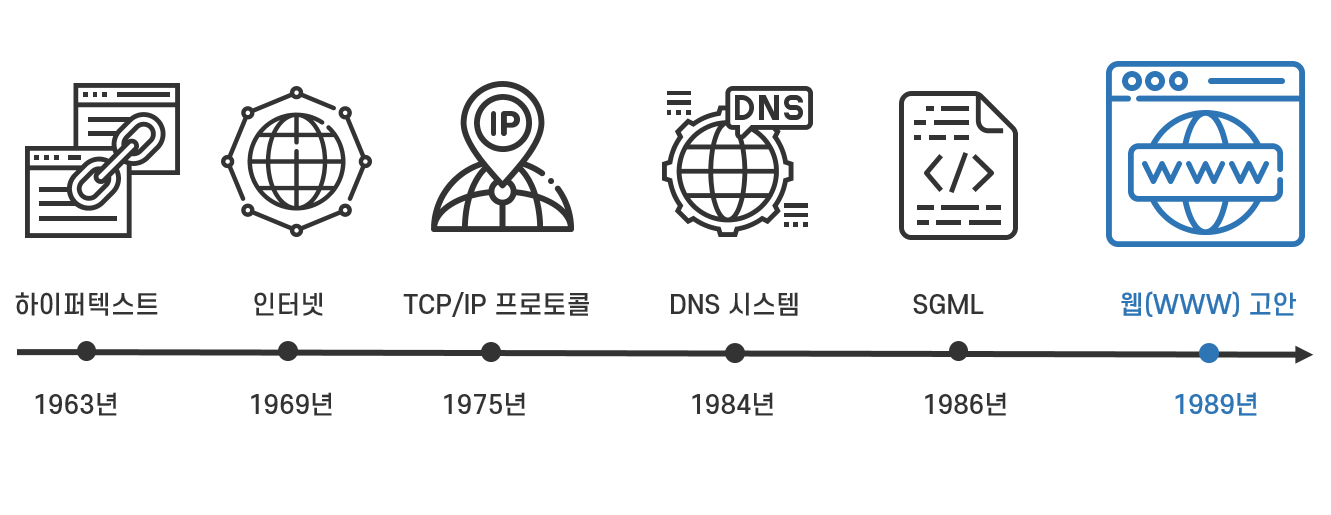 보통 인터넷과 동일시할 정도로 인터넷을 대표하는 서비스가 된 웹(WWW)은 1989년 팀 버너스 리가 아이디어를 제시하고, 동료들과 함께 개발하여 1990년 12월 25일 구현된 최초의 웹을 시작으로 발전한 것입니다.