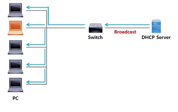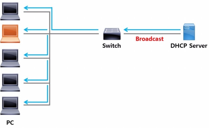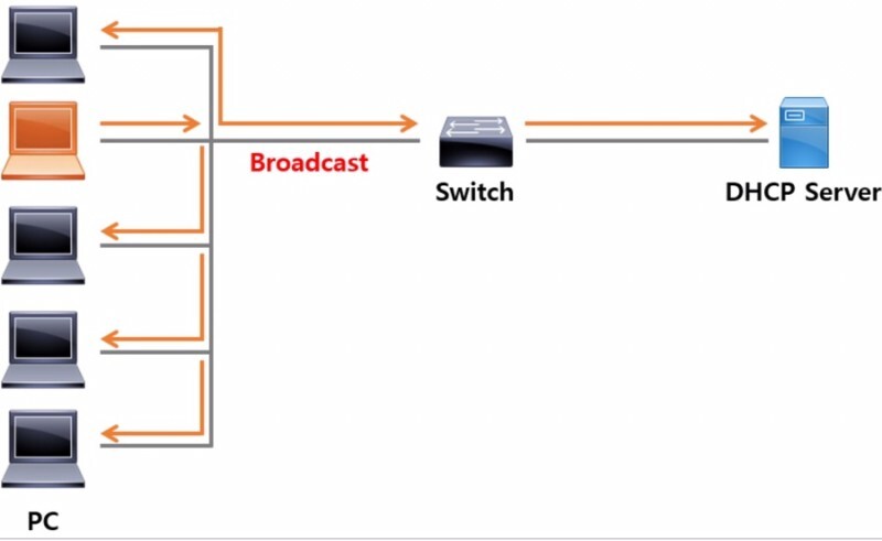 새롭게 도착한 호스트는 자신이 접속될 네트워크의 DHCP 서버 주소를 알지 못하기 때문에,