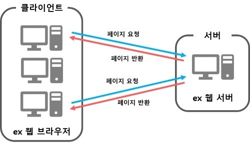 = 클라이언트와 서버간에 데이터를 주고 받는 상황을 설명 할 때,