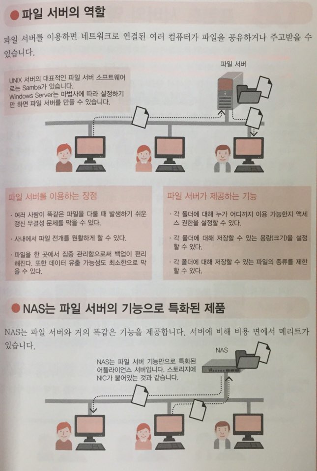 - 파일 서버는 LAN, WAN과 같은 네트워크에서 다른 컴퓨터와 파일을 공유 or 데이터를 송수신하기 위해 사용하는 서버이다.