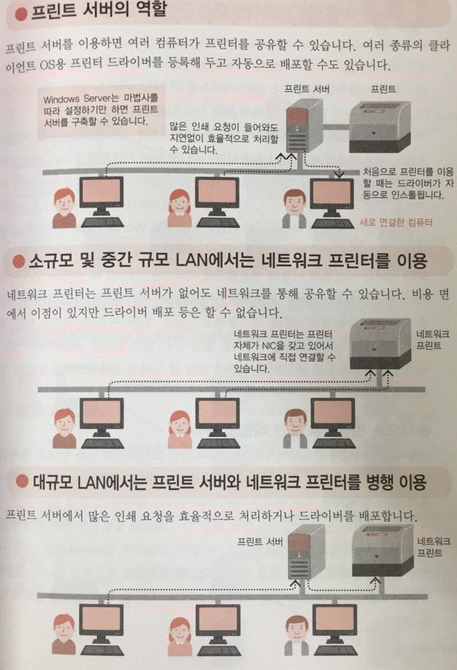- 프린트 서버는 여러 컴퓨터가 프린터를 공유 or NIC을 내장하지 않은 프린터를 네트워크에 연결하기 위해 사용하는 서버이다.