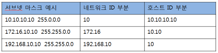 아까 봤던 주소를 다시 봐보면 192.168.0에 255.255.255가 대응하고 IP 주소의 4와 서브넷 마스크의 0이 대응을 하는 것을 알 수 있다. 이때 255.255.255에 대응하는 192.168.0을 네트워크 ID라고 하며 0에 대응하는 4를 호스트 ID라고 한다. 이해를 돕기위해 아래 네트워크 ID와 호스트 ID에 대한 예시를 첨부하였다.