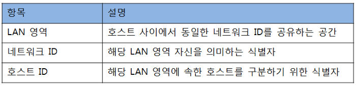 이처럼 동일한 네트워크 ID를 공유하는 장치들의 공간을 LAN(Local Area Network)영역 이라고 한다.