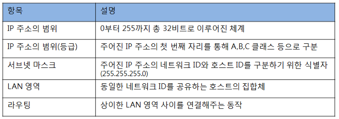 지금까지 LAN 영역에 관해 배운 것을 정리하면 위의 표와 같다.