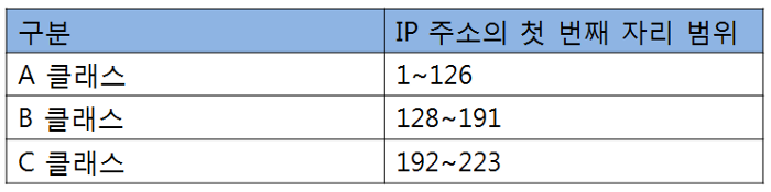 이러한 IP 주소에는 클래스라는 개념이 있는데 이는 번호의 영역이라고 생각하면 편하다. 클래스의 기준은 아래 표와 같다.