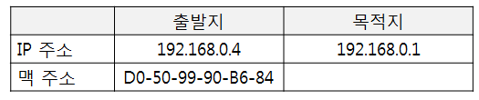 다른 영역의 LAN에 접속을 하기 위해서는 라우터를 통해서 가야하기 때문에 운영체제는 목적지 IP를 라우터의 IP 주소인 192.168.0.1로 설정한다.
