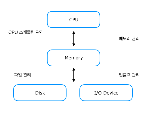 | 주변장치 관리 | 입 출력 장치 스케줄링 및 전반적인 관리 담당 |