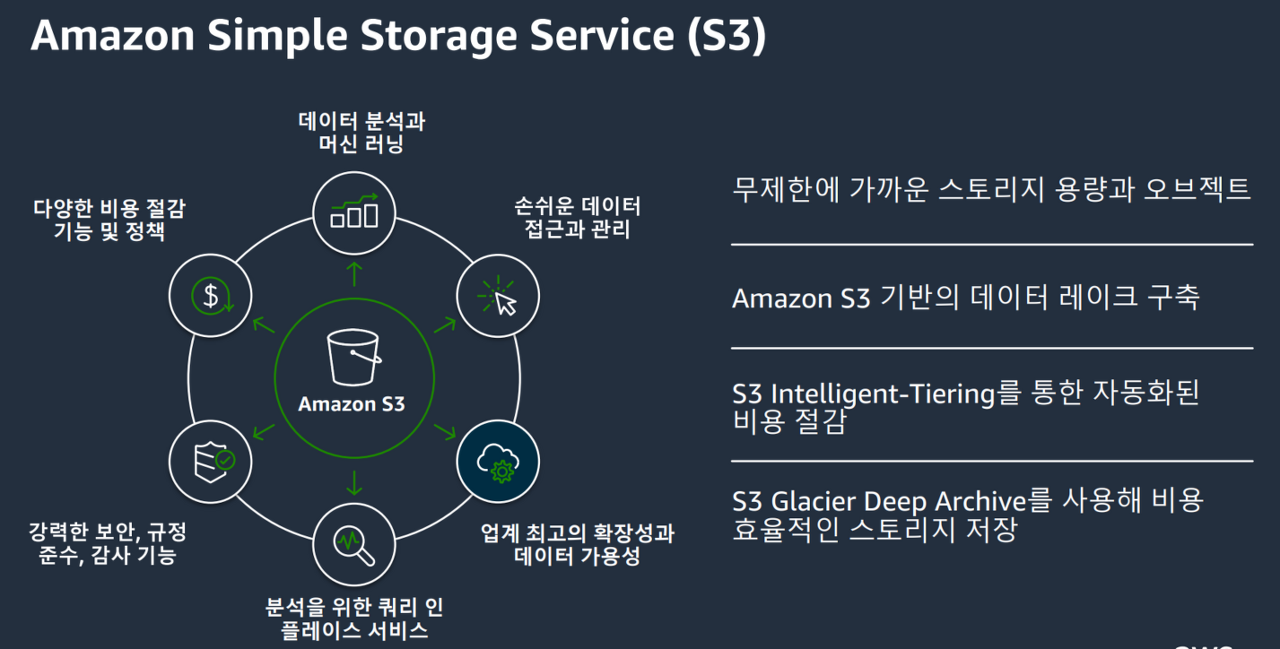 - 버킷은 데이터 스토리지를 위한 S3의 기본 컨테이너