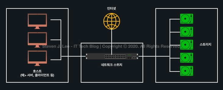 특히 NAS 방식은 스토리지가 다른 호스트 없이 직접 네트워크에 연결되는 방식입니다.