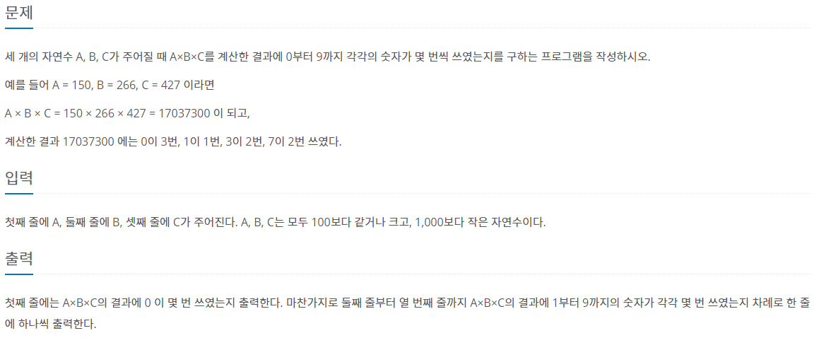 백준 2577번 숫자의 개수 [JAVA] 본문