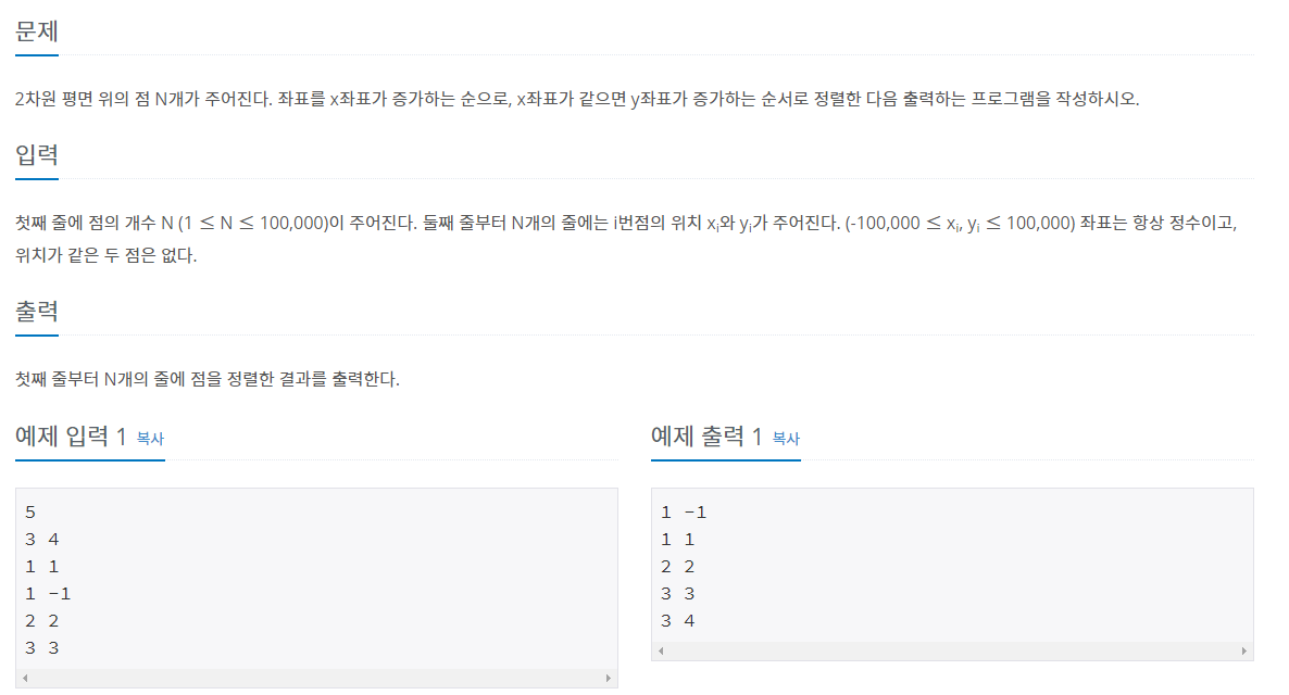 백준 11650번 좌표 정렬하기 [JAVA] 본문