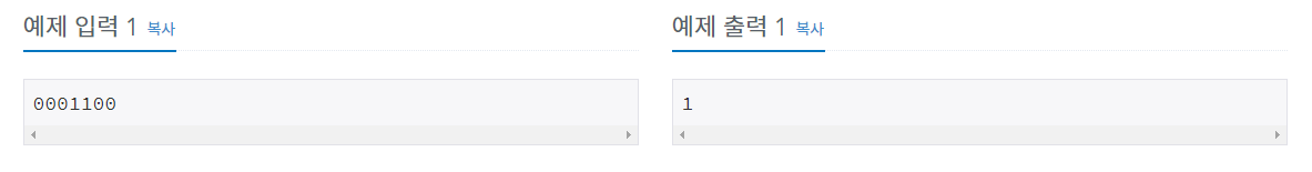 다솜이는 0과 1로만 이루어진 문자열 S를 가지고 있다. 다솜이는 이 문자열 S에 있는 모든 숫자를 전부 같게 만들려고 한다. 다솜이가 할 수 있는 행동은 S에서 연속된 하나 이상의 숫자를 잡고 모두 뒤집는 것이다. 뒤집는 것은 1을 0으로, 0을 1로 바꾸는 것을 의미한다.