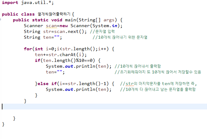 백준 11721번 열개씩끊어출력하기 [JAVA] 본문