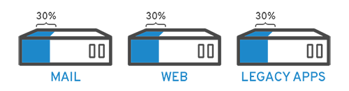 예를 들어 다음과 같이 세 개의 물리 서버가 있는데 사용량이 크지 않은 경우를 봅시다.