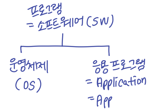 일반적으로 프로그램 = 소프트웨어라고 알고 있다. 이 소프트웨어는 운영체제와 응용 프로그램로 나눌 수 있다.